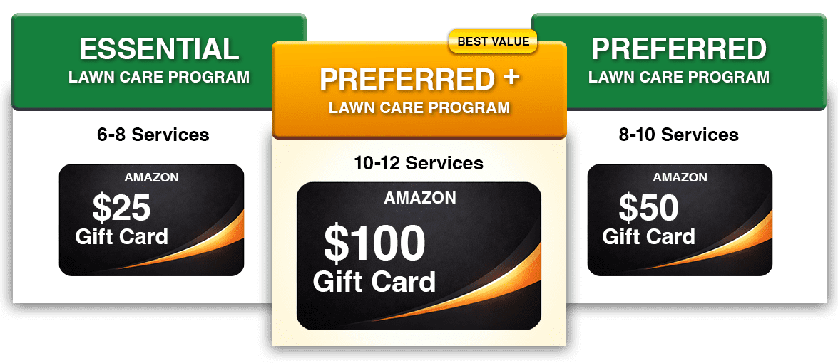 *Offer valid for new residential customers only with the purchase of a 2026 Lawn Care Program. Offer may not be combined with any other discounts, promotions, or offers. Limit one gift card per household. No cash value. Gift card issued electronically after the first service payment has been processed. Enrollment in AutoPay, Budget Billing, or Prepay is required. Applies to lawns up to 10,000 sq. ft. Lawns exceeding 10,000 sq. ft. require a call for special pricing and a free estimate. Purchase of an annual lawn plan is required for Lawn Analysis, which is performed during the first visit. Amazon is not affiliated with this promotion. Offer subject to change or cancellation without notice.